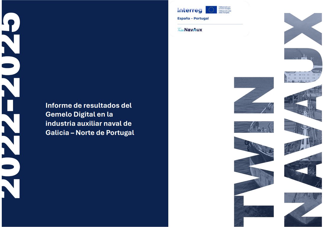 El proyecto TWIN NAVAUX, cofinanciado por la Unión Europea a través del Programa Interreg VI-A España-Portugal POCTEP 2021 – 2027, se centra en impulsar el uso del Gemelo Digital (Digital Twin) en la Industria Auxiliar Naval de Galicia y Norte de Portugal.